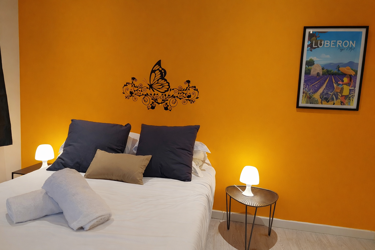 Chaque chambre est équipée d’un grand lit avec matelas 140 cm. Lit d’appoint sur demande.